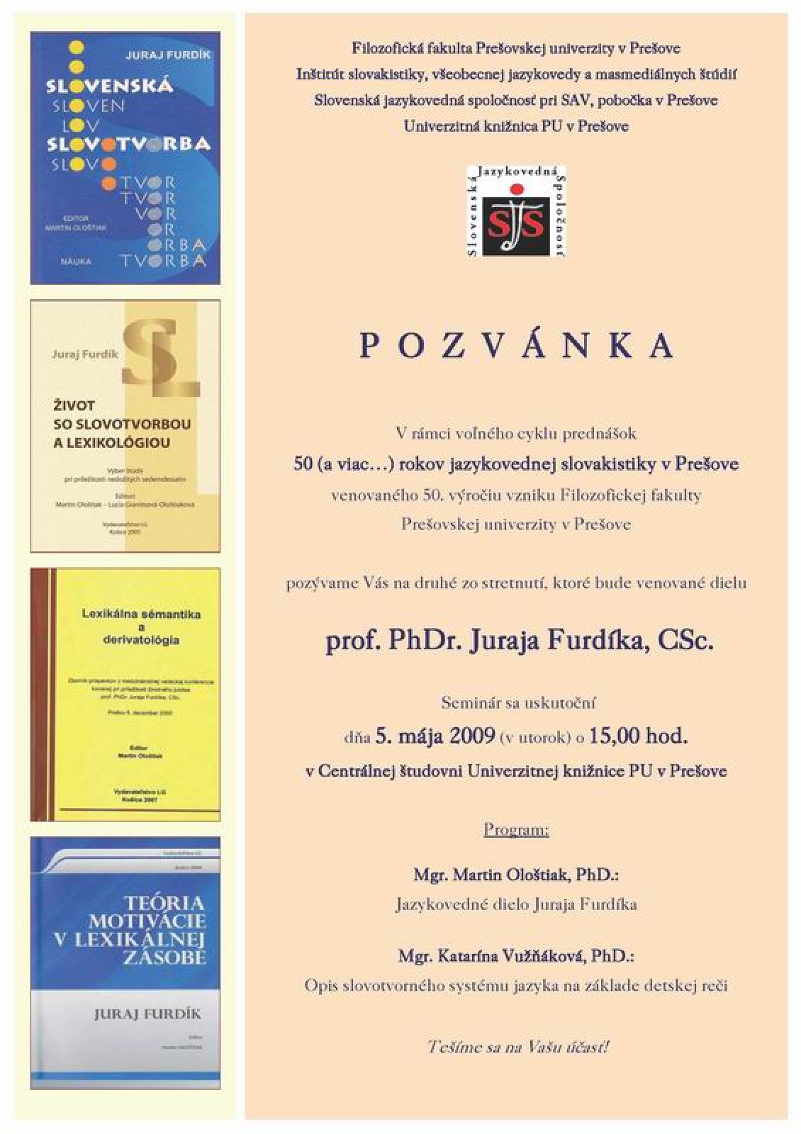 Seminár venovaný dielu prof. PhDr. Juraja Furdíka, CSc.