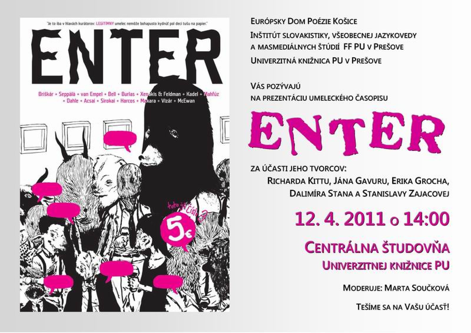 Prezentácia umeleckého časopisu ENTER