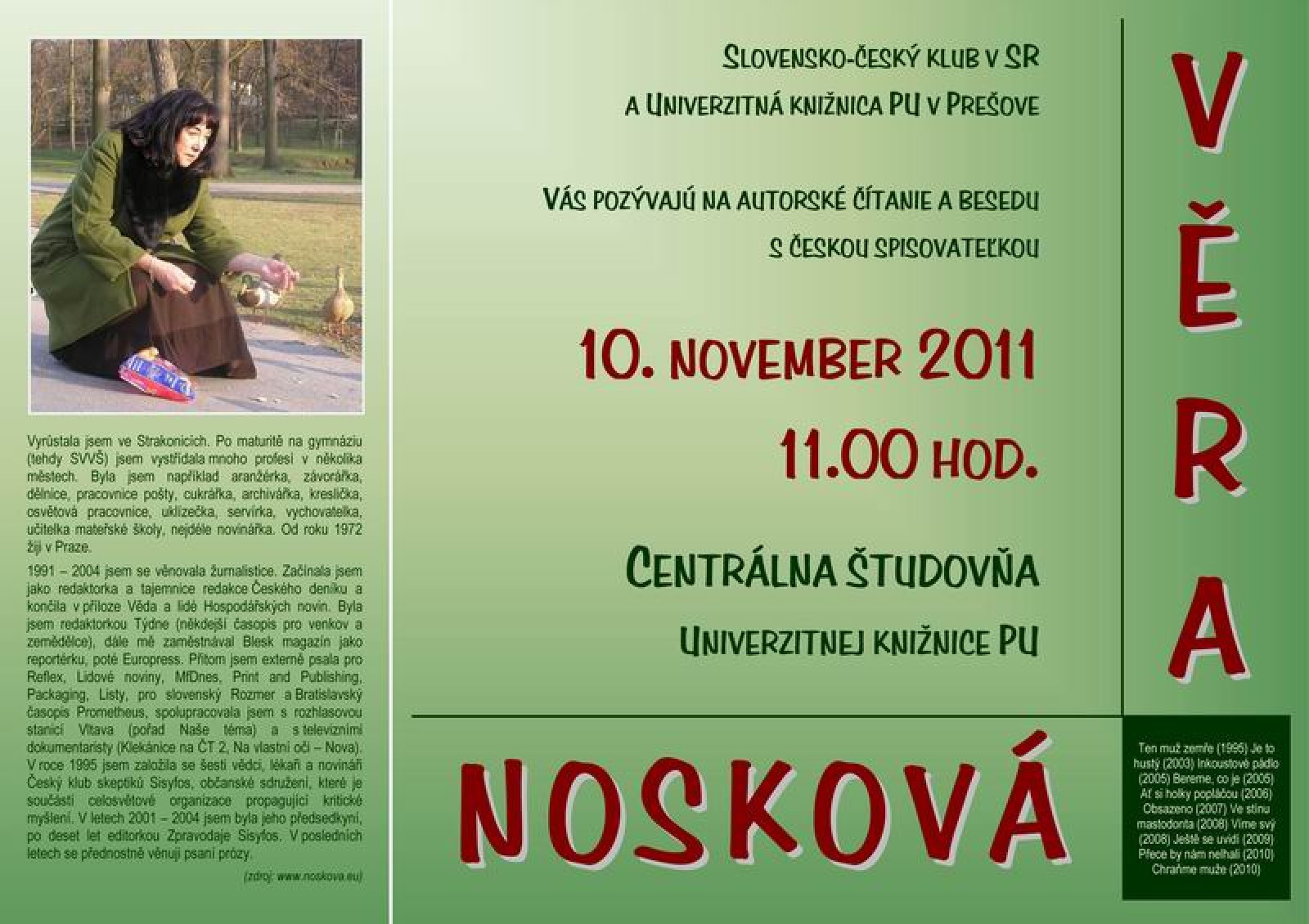 Beseda so spisovateľkou Věrou NOSKOVOU