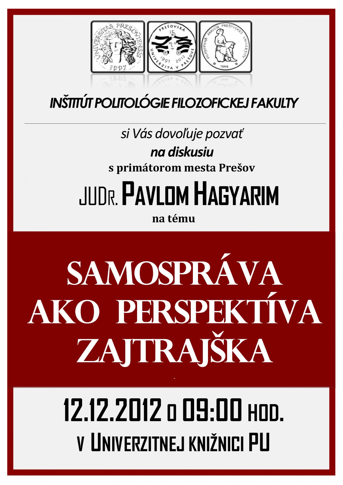 Prednáška JUDr. Pavla Hagyariho: Samospráva ako perspektíva zajtrajška