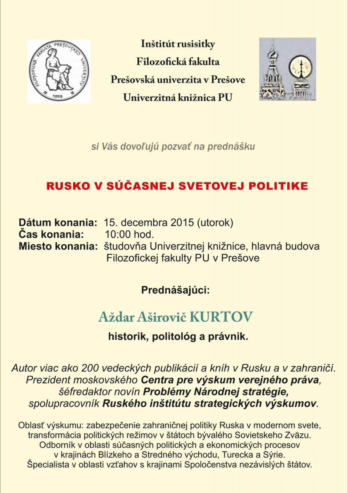 Prednáška - Aždar A. Krutov: RUSKO V SÚČASNEJ SVETOVEJ POLITIKE