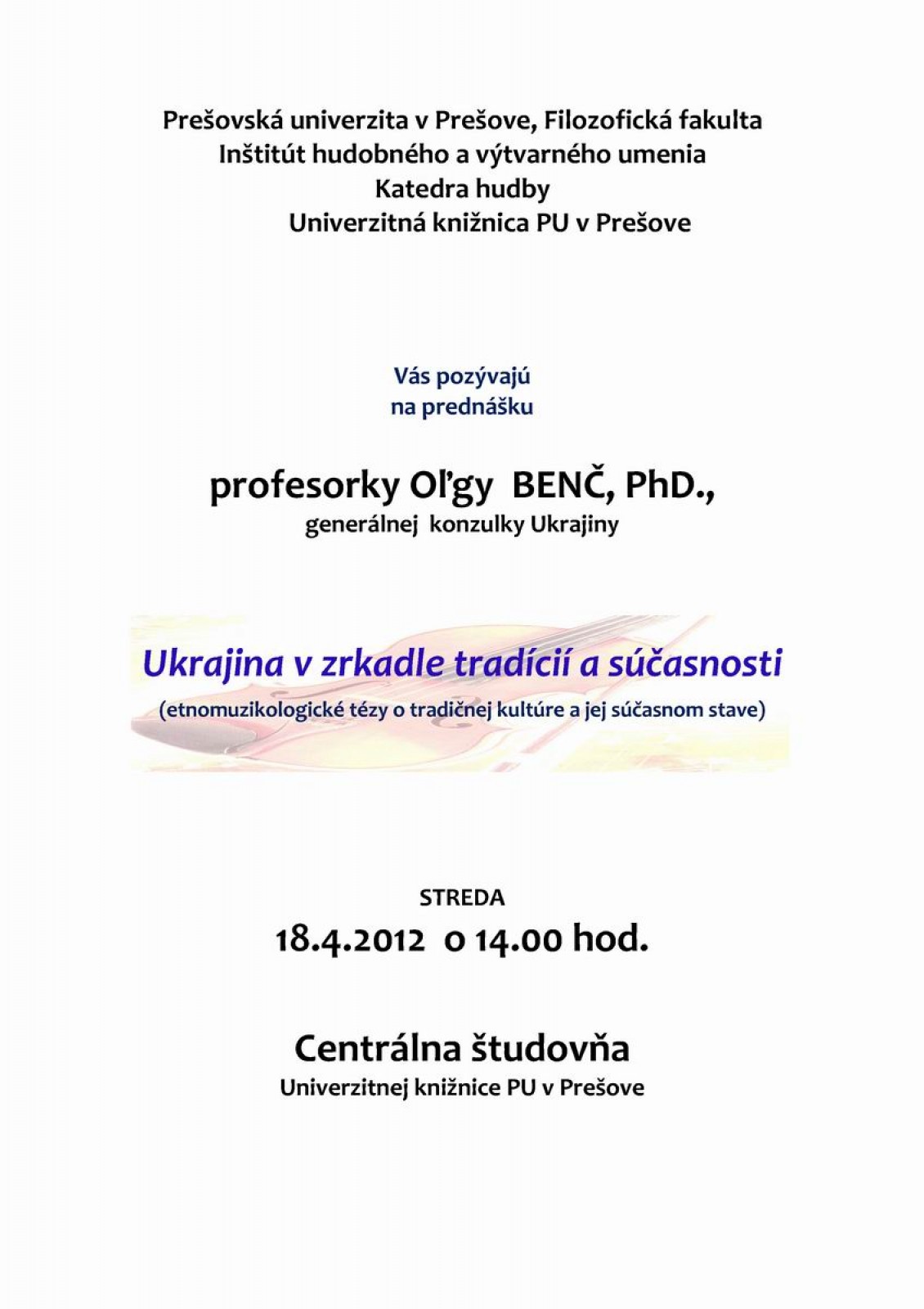 Prednáška prof. Oľgy Benč: Ukrajina v zrkadle tradícií a súčasnosti