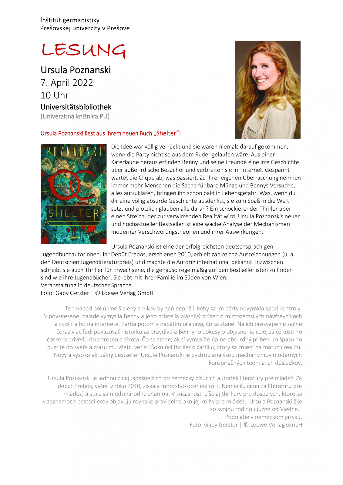 Autorská prezentácia knihy - Ursula Poznanski: SHELTER