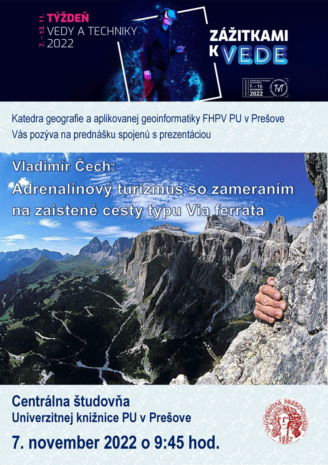 Cestopisná prednáška - Vladimír Čech: Adrenalínový turizmus so zameraním na zaistené cesty typu Via ferrata